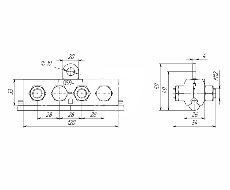 Зажим соединительный для проводов сечением КС-054 70-95 мм²/ 95-120 мм²